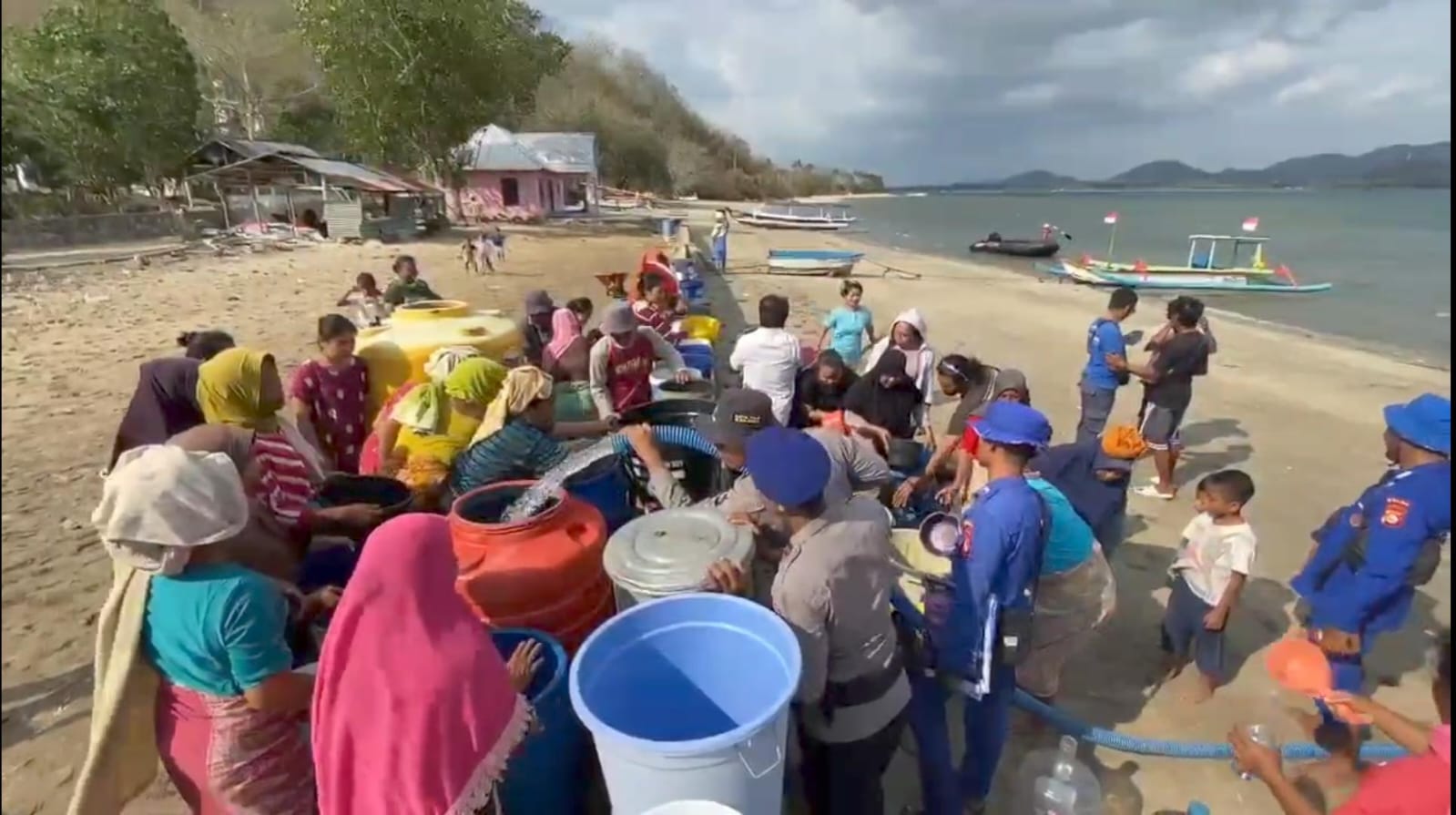 Tidak hanya memberikan imbauan, tim cooling system Ditpolairud Polda NTB juga membawa bantuan berupa sembako dan air bersih, bagi masyarakat pesisir yang membutuhkan. Bantuan tersebut disalurkan di beberapa titik, seperti Teluk Nara di Lombok Utara dan Desa Banyu Putih di Lombok Barat, yang dinilai sangat membutuhkan dukungan tersebut.