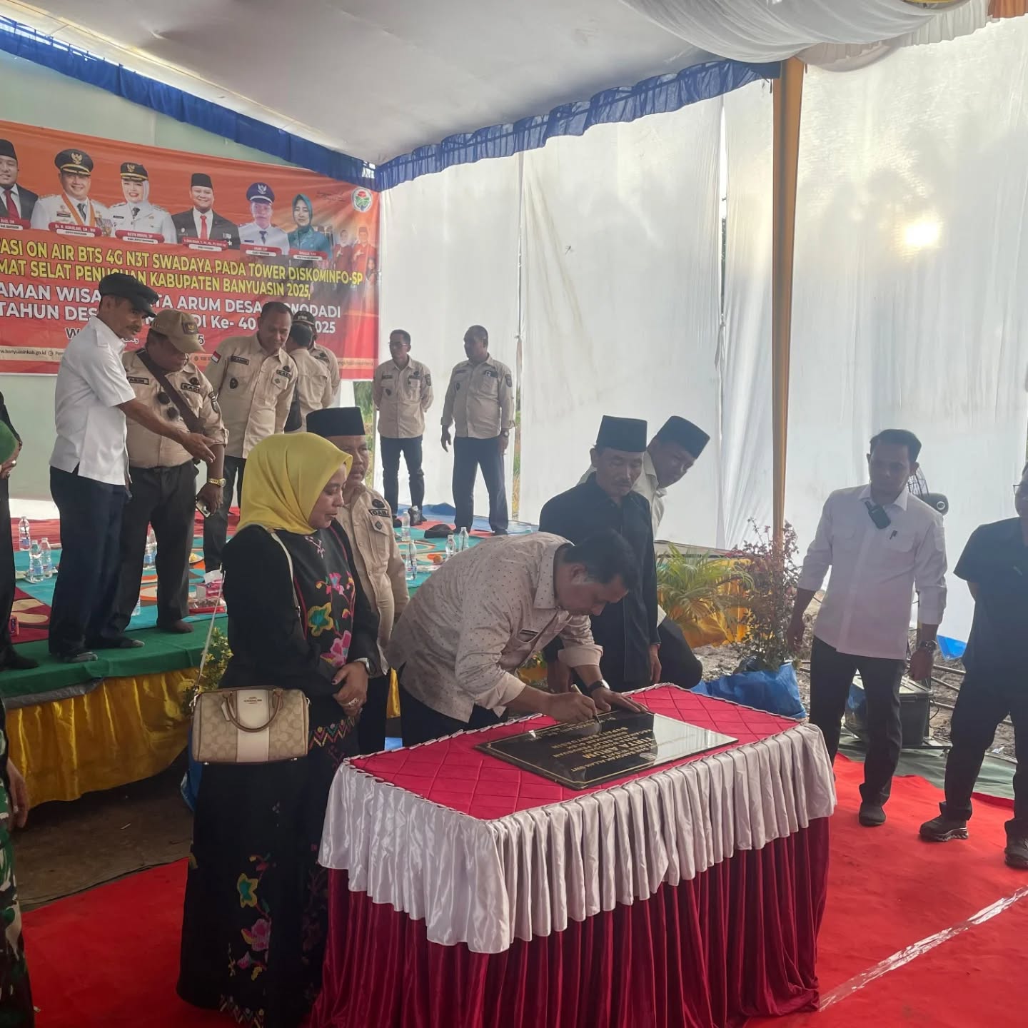 Setelah itu, Askolani didampingi oleh Kepala Dinas Komunikasi dan Informatika Kabupaten Banyuasin, Dr. H. Salni Pajar, S.Ag., M.Hi dan Camat Selat Penuguan, Samsudin, S.Pd., M.Si melakukan peresmian BTS 4G Telkomsel dan Link Transpor Telkomsel Kolaborasi antara Dinas Kominfo dan Telkomsel untuk mengatasi Blankspot di Kantor Camat Selat Penuguan. (ril)