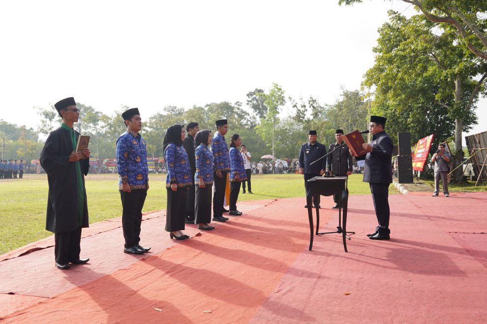 Banyuasin (Sumsel, utarapos.com – Suasana haru serta khidmat mewarnai jalannya pengambilan sumpah janji Pegawai Pemerintah dengan Perjanjian Kerja (PPPK) tahap I dan Calon Apratur Sipil Negara (CPNS) Kabupaten Banyuasin yang berlangsung di Lapangan Upacara Kantor Bupati Banyuasin, Rabu (14/5/2025).