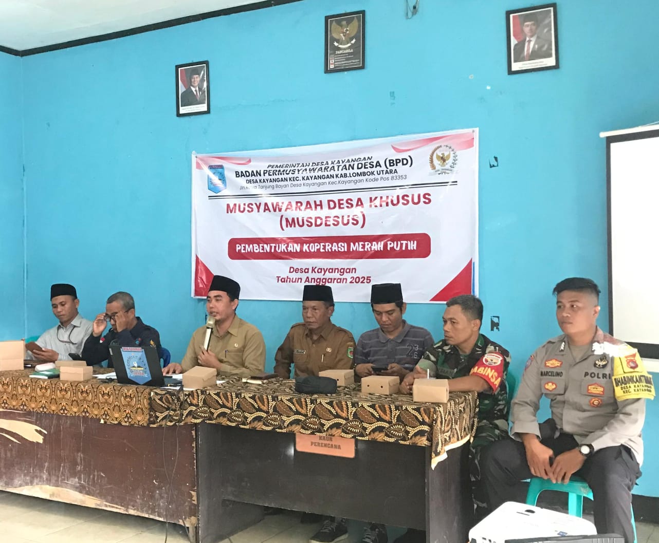Rapat dihadiri oleh sejumlah pihak, di antaranya Sekretaris Dinas Perindagkop dan UMKM KLU, Nurdin, S.KM, Tenaga Ahli (TA) Kopdes H. Husnul Aziz, ST, serta Pendamping Desa Kecamatan Kayangan Suryadi, S.Pd dan Yusri Imran, S.Hut. Kegiatan juga turut dihadiri oleh anggota BPD Kayangan, tokoh agama, tokoh masyarakat, pemuda, serta perwakilan perempuan desa setempat. (lai)