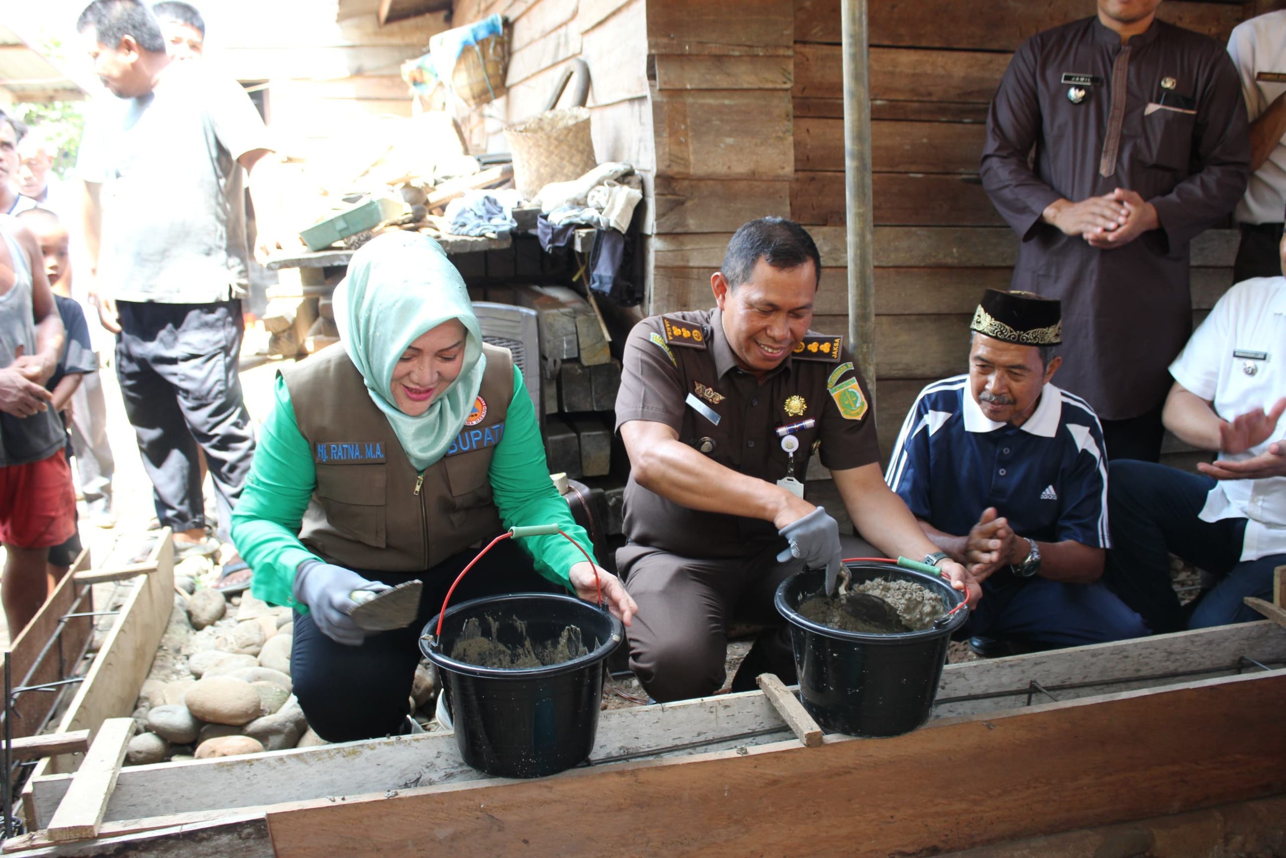 Plt Kepala Kejari Musi Rawas, Abu Nawas bersama Bupati Musi Rawas, Hj. Ratna Machmud melakukan peletakan batu pertama program bedah rumah, Rabu (4/5/2025). (Foto: Istimewa)