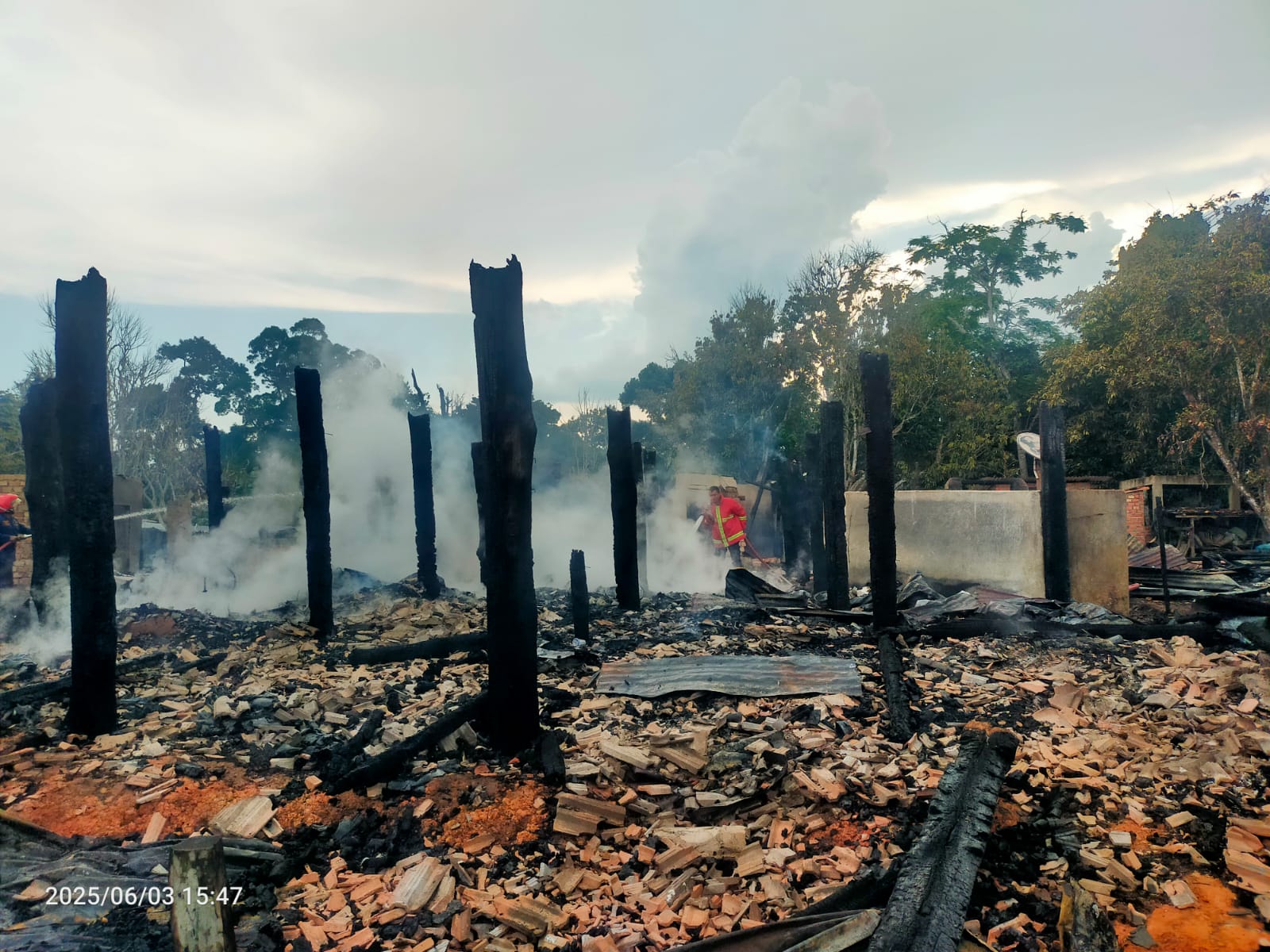 Kepala Desa Dawas, Amsar H., melaporkan insiden tersebut kepada petugas Damkar. Tim segera bergegas ke lokasi dan melakukan pemadaman bersama warga.