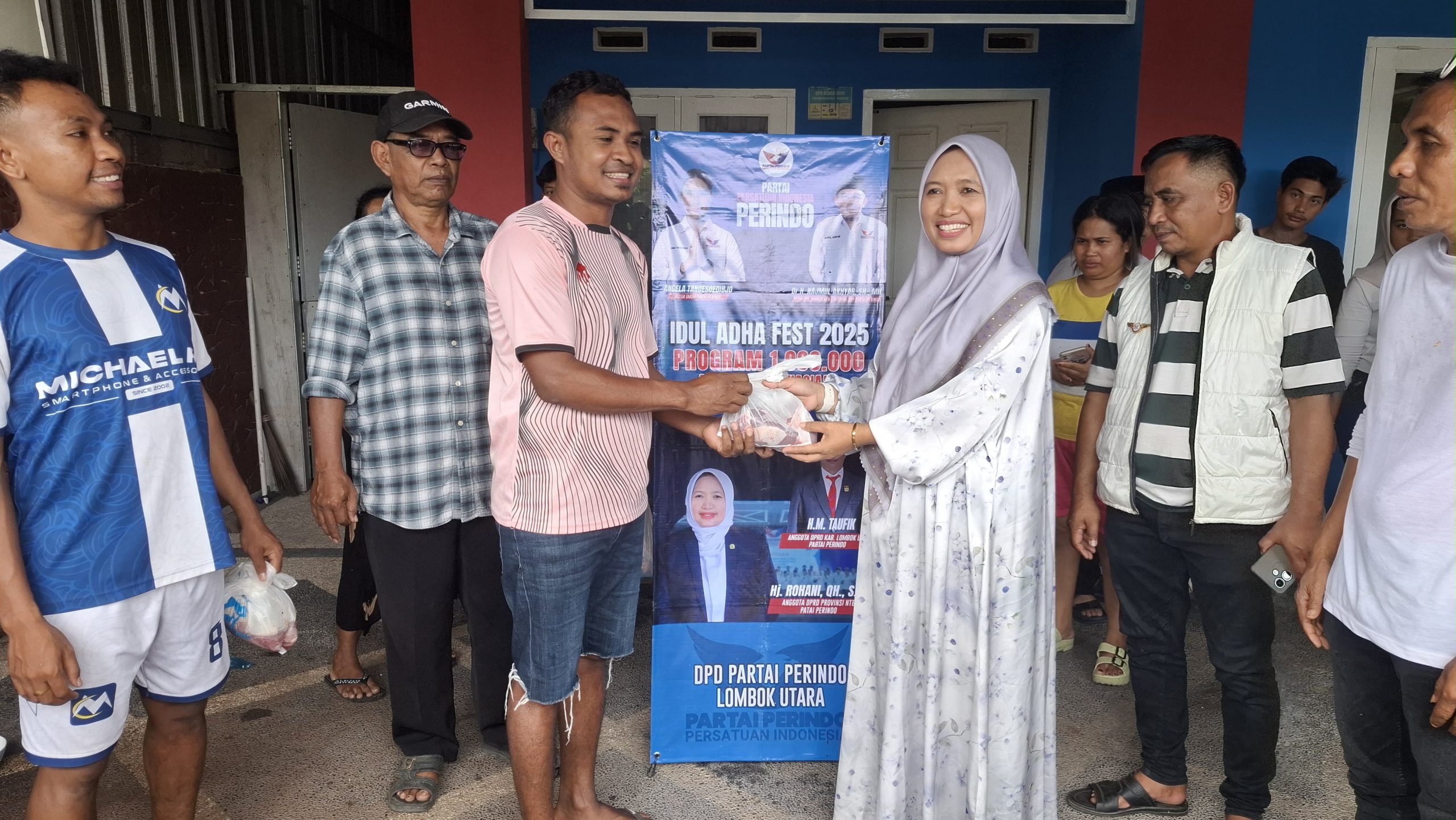 Pada Sabtu kemarin Wakil Ketua Bidang Teritorial DPP Perindo Dr.Najmul Akhyar didampingi Anggota DPRD Provinsi NTB Dari Partai Perindo Hj.Rohani Najmul Akhyar, sejumlah pengurus DPD Perindo Lombok Utara secara simbolis menyerahkan sapi qurban kepada warga dikantor DPD Perindo yang berlokasi di Desa Medana, Kecamatan Tanjung. Sabtu (7/6/2025)