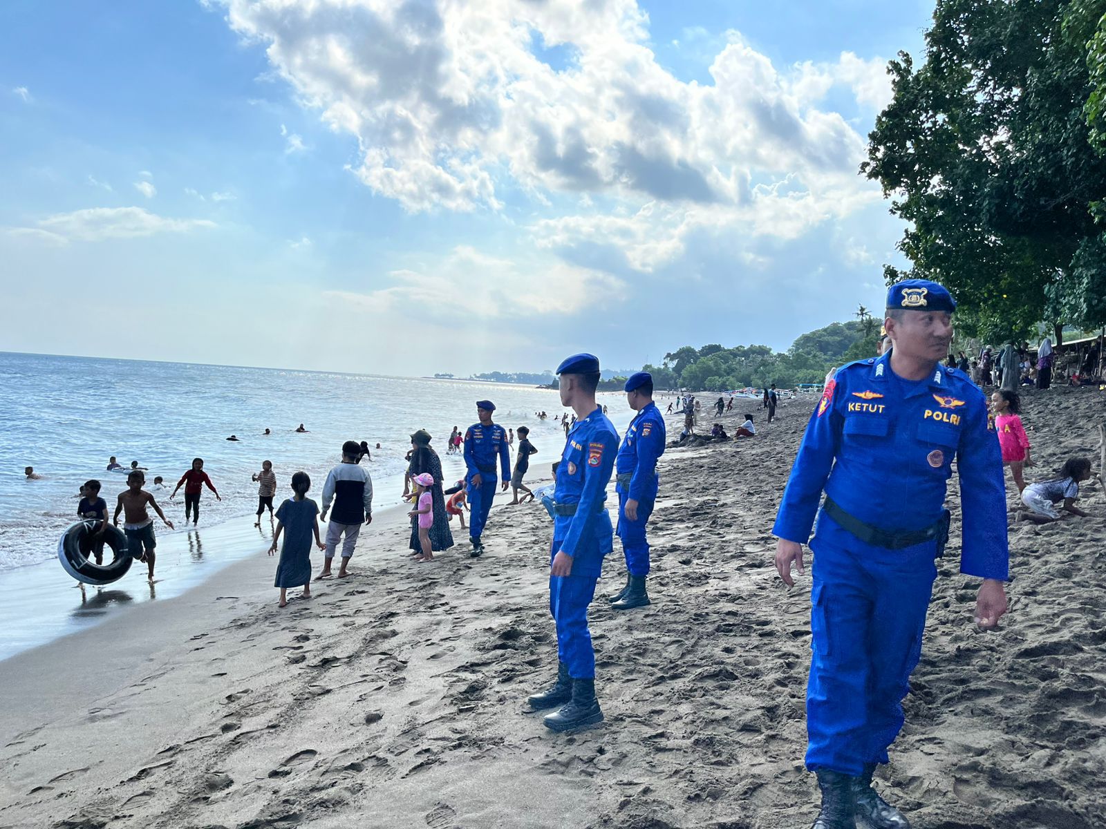 Jajaran Ditpoairud Polda NTB saat gelar patroli di kawasan pantai Senin (9/6/2025)