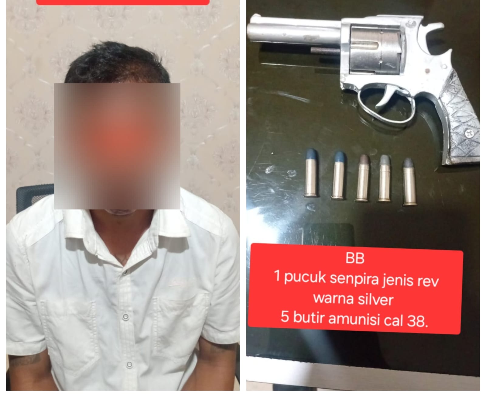 “Barang bukti 1 pucuk senpi rakitan jenis rev warna silver, 5 butir amunisi cal 38 warna silver” terangnya