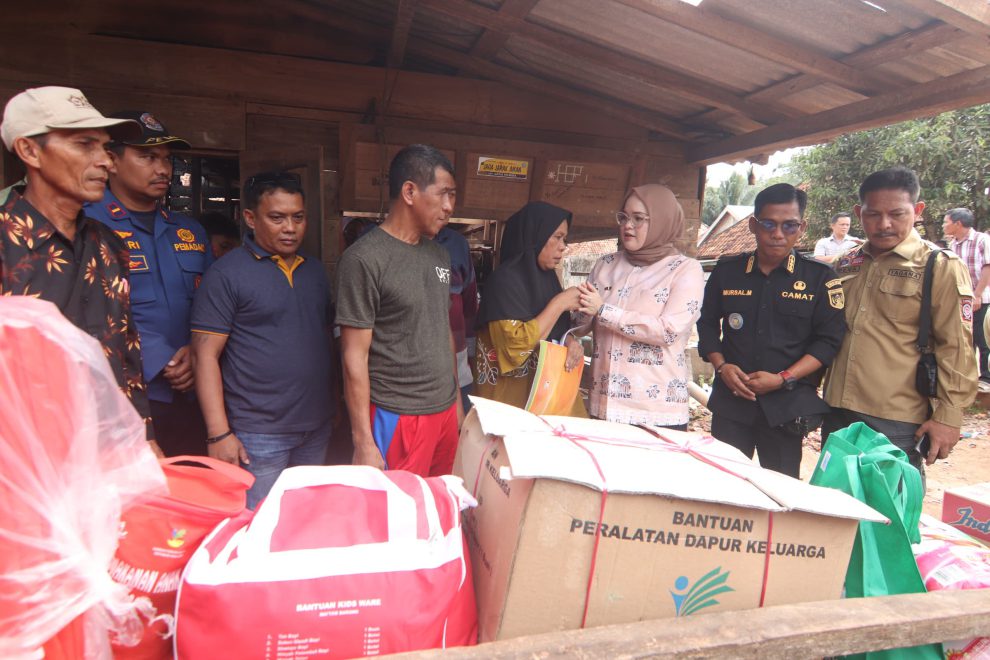 Wakil Bupati Banyuasin Netta Indian Sp saat serahkan bantuan kepada korban kebakaran bernama Subari warga Dusun 4 Desa Suka Pindah Kecamatan Rambutan Kamis (19/6/2025).