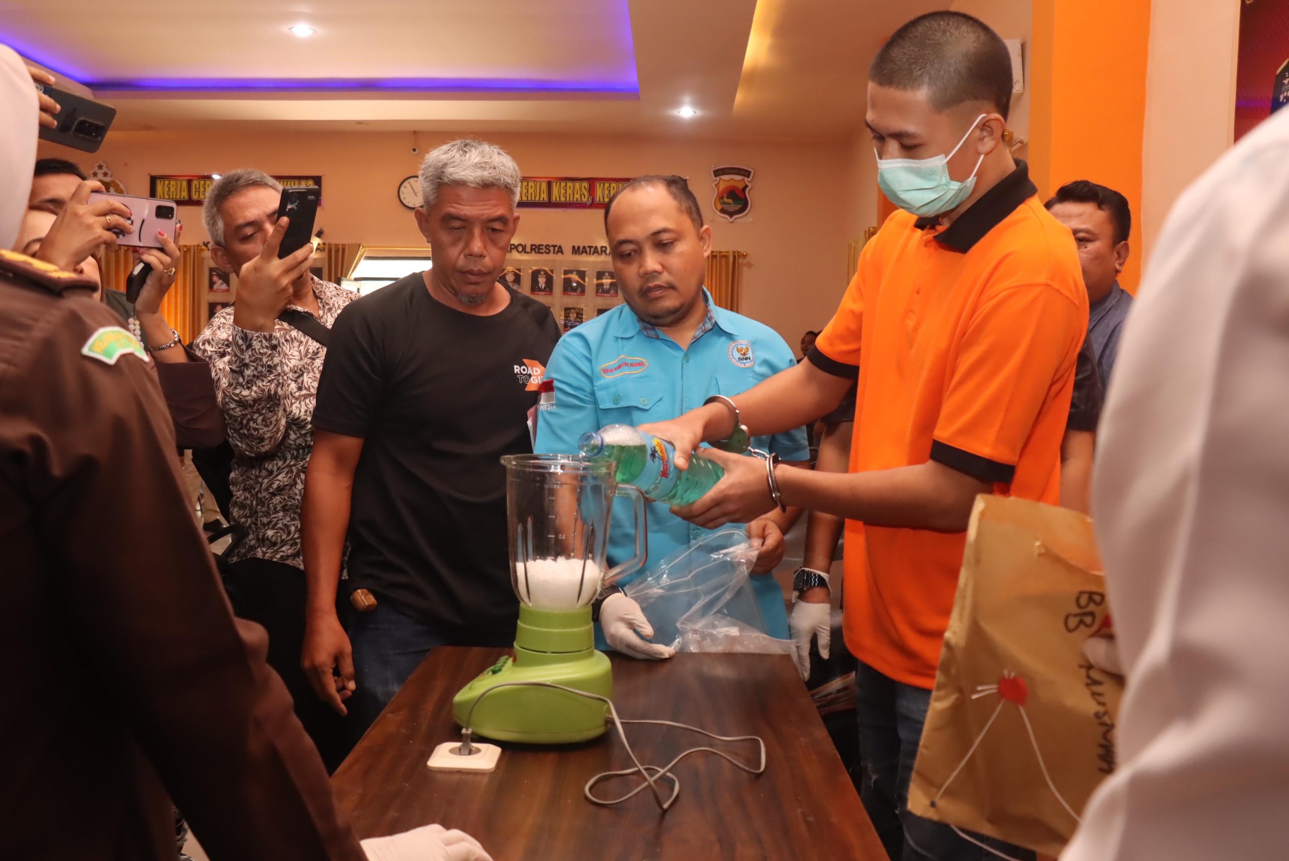 Pemusnahan barang bukti Sabu hasil ungkap kasus Bulan Mei 2025 oleh Polresta Mataram, Selasa (24/6/2025).