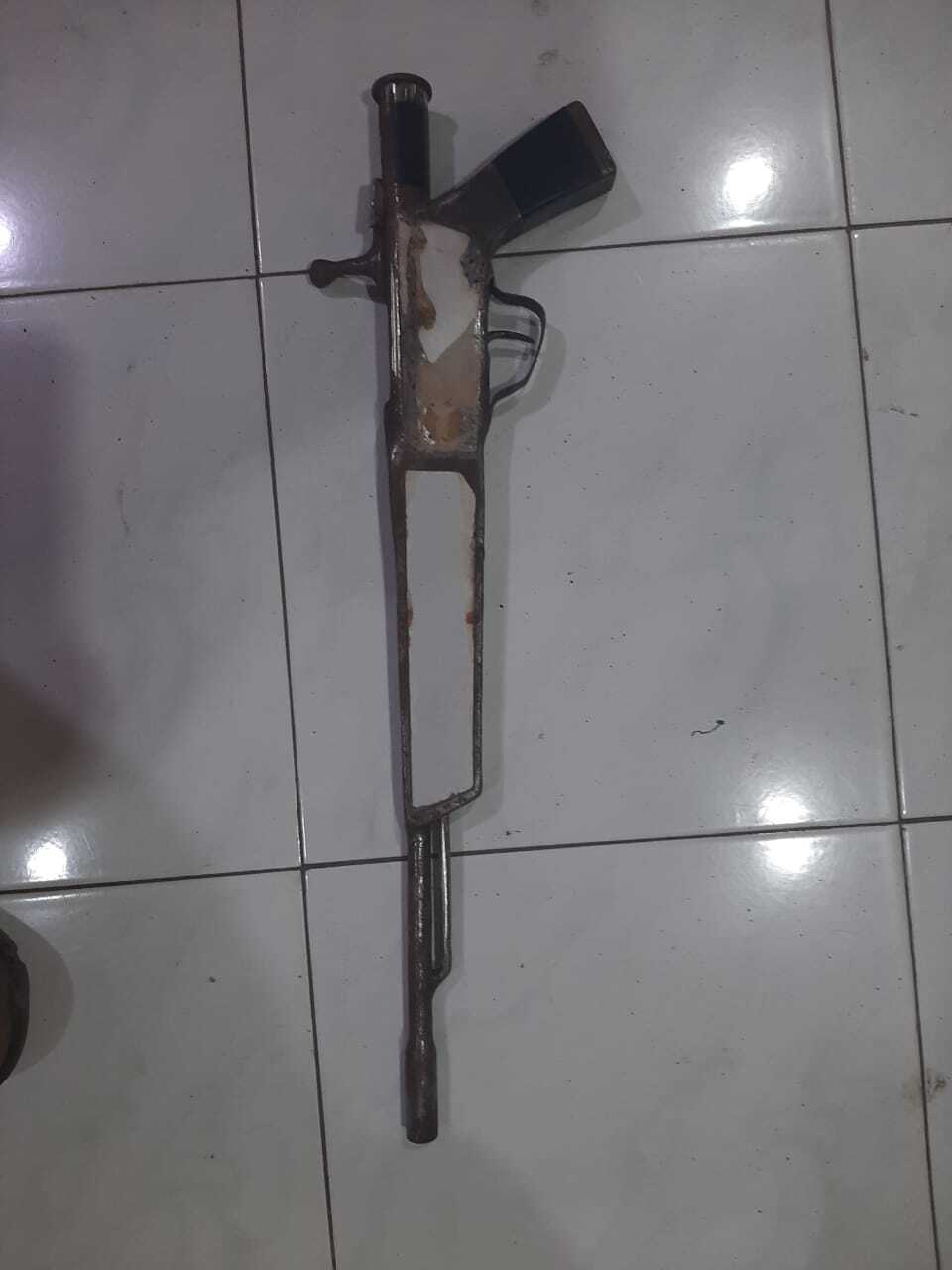 Karena khawatir situasi memanas, keluarga S bersama Bhabinkamtibmas, Kadus, dan Kasi Pemerintahan Desa kemudian mendatangi rumah mereka untuk memediasi. Di tengah proses mediasi tersebut, ibu mertua ES secara spontan menyerahkan satu bungkusan karung plastik berisi senpi rakitan, yang selama ini disimpan di dalam kamar.