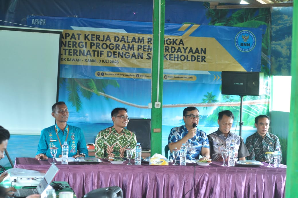 Lampung Selatan (Lampung), utarapos.com – Rapat kerja (Raker) sinergi program pemberdayaan alternatif resmi dibuka oleh Kepala Badan Narkotika Nasional (BNN) Kabupaten Lampung Selatan, AKBP Rahmad Hidayat SE MM, pada kamis (3/7/2025). Kegiatan ini diadakan sebagai upaya memperkuat kolaborasi antara BNN dengan berbagai stakeholder terkait guna meningkatkan efektivitas program pemberdayaan masyarakat dalam rangka pencegahan dan pemberantasan narkoba.