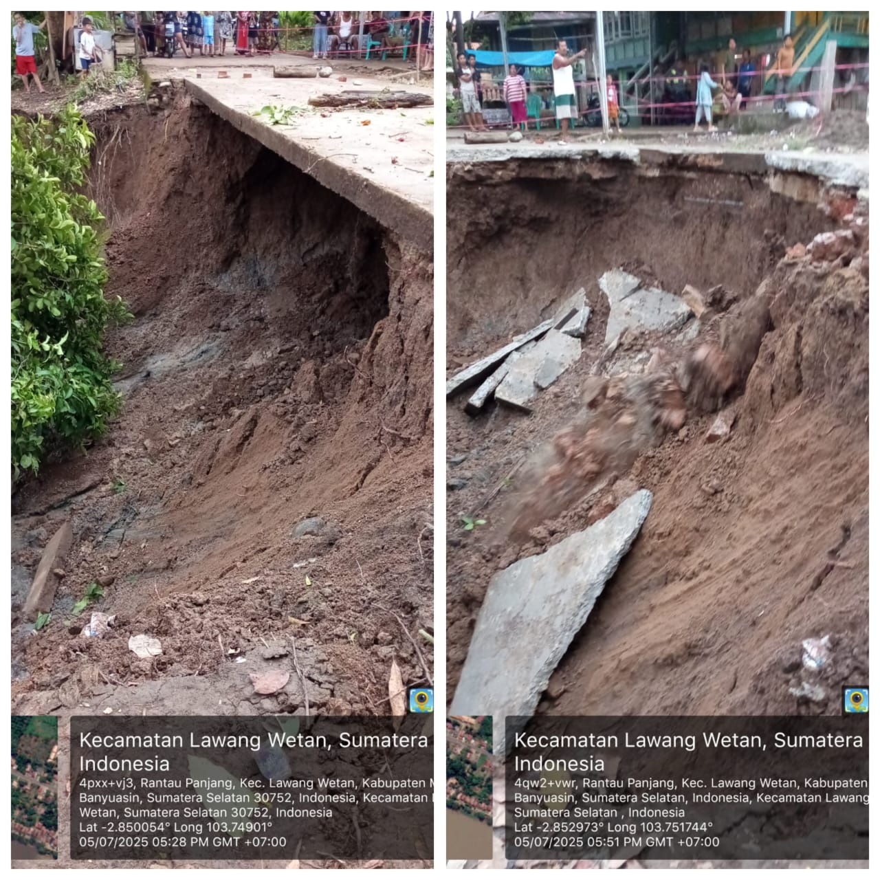 Pathi Riduan menjelaskan bahwa terdapat dua titik longsor yang kondisinya cukup mengkhawatirkan dimana dilokasi Pertama Pathi Ridwan menyebutkan Panjang longsoran mencapai 30 meter dengan ketinggian 8 meter, hanya berjarak 6 meter dari rumah warga dan diokasi Kedua, panjang 8 meter dengan ketinggian 6 meter, berjarak hanya 1 meter dari rumah warga.