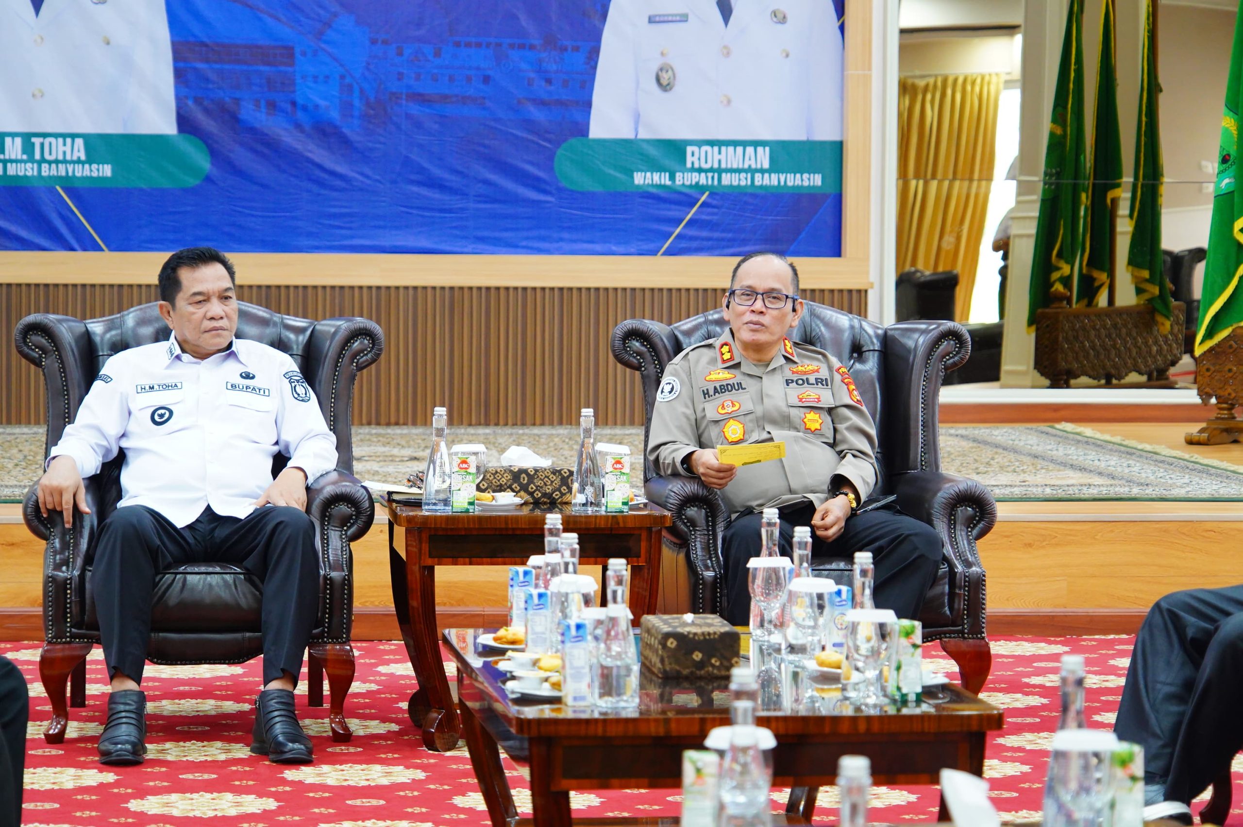 Musi Banyuasin (Sumsel), utarapos.com – Bupati Musi Banyuasin (Muba) H M Toha SH menyambut kunjungan Kepala Badan Narkotika Nasional Kabupaten (BNNK) Musi Rawas, AKBP Abdul Rahman, ST, MM, di Guest House Griya Bumi Serasan Sekate, Rabu (16/7/2025). Pertemuan ini membahas rencana pembentukan BNN Kabupaten di Musi Banyuasin sebagai upaya memperkuat pemberantasan narkoba.