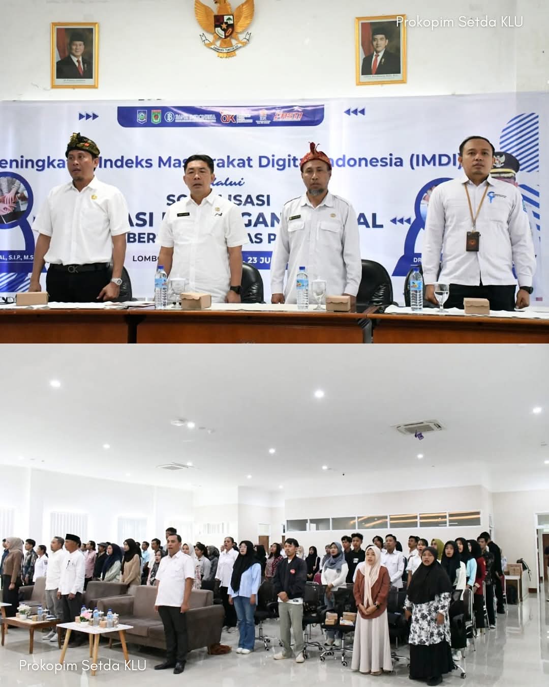 Sekda KLU, Anding Duwi Cahyadi, S.STP, M.M didampingi Kepala Dinas Kominfo KLU Hairul Anwar, S.Kom., Kepala Dinas Koperasi, Perindustrian, dan Perdagangan Lombok Utara H. Haris Nurdin, S.Sos, Kepala UPTD Pusat Layanan Digital Provinsi NTB, Ari Wahyuddin, S.STP, M.M pada rangkaian acara pembukaan Sosialisasi Peningkatan Indeks Masyarakat Digital Indonesia (IMDI) di Aula Kantor Bupati Lombok Utara, Rabu (23/7/2025).