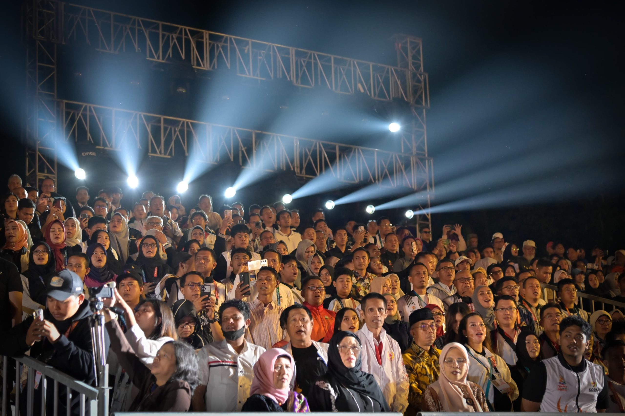Mataram (NTB), utarapos.com- Ribuan masyarakat Nusa Tenggara Barat (NTB) menunjukkan antusiasme yang tinggi terhadap pembukaan FORNAS VIII yang diadakan di Kantor Gubernur Provinsi NTB, Kota Mataram. Pembukaan acara FORNAS VIII NTB menampilkan berbagai pertunjukan seni dan budaya termasuk tarian kolosal, atraksi kesenian musik daerah dan penampilan musisi Denada, Edo Kondologit dan musisi daerah Amtenar.