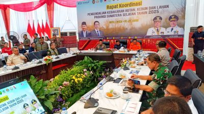 Palembang (Sumsel), utarapost.com – Mewakili Bupati Musi Rawas (Mura), Hj. Ratna Machmud, Kepala Pelaksana (Kalak) Badan Penanggulangan Bencana Daerah (BPBD) Kabupaten Mura, H. A. Darsan menghadiri Rapat Koordinasi (Rakor) Pengendalian Kebakaran Hutan, Kebun, dan Lahan Provinsi Sumatera Selatan Tahun 2025, di Griya Agung, Palembang, Selasa (29/7/2025).