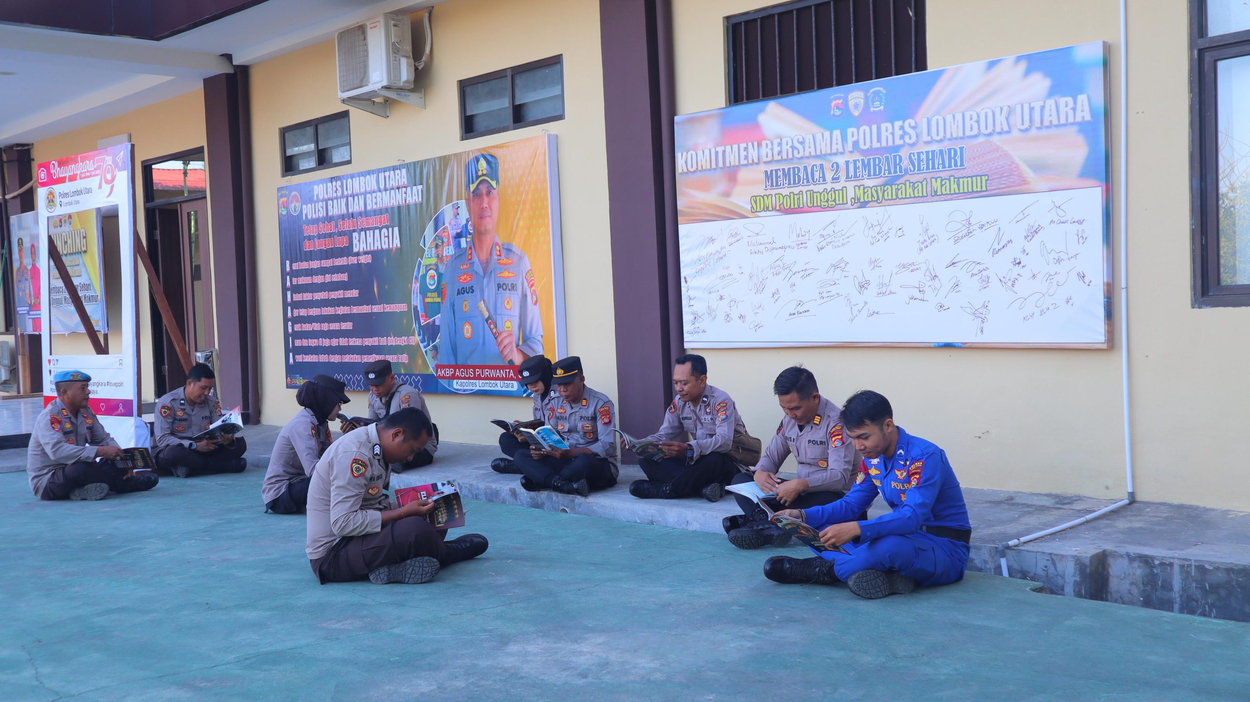 Program ini sejalan dengan inisiatif internal Polres Lombok Utara yang belum lama ini diluncurkan oleh Kapolres bersama Ketua Bhayangkari Cabang Lombok Utara, Ny. Heny Agus Purwanta, yaitu program “Membaca Dua Lembar Per Hari” yang resmi dimulai pada 15 Juli 2025 melalui penandatanganan komitmen bersama.