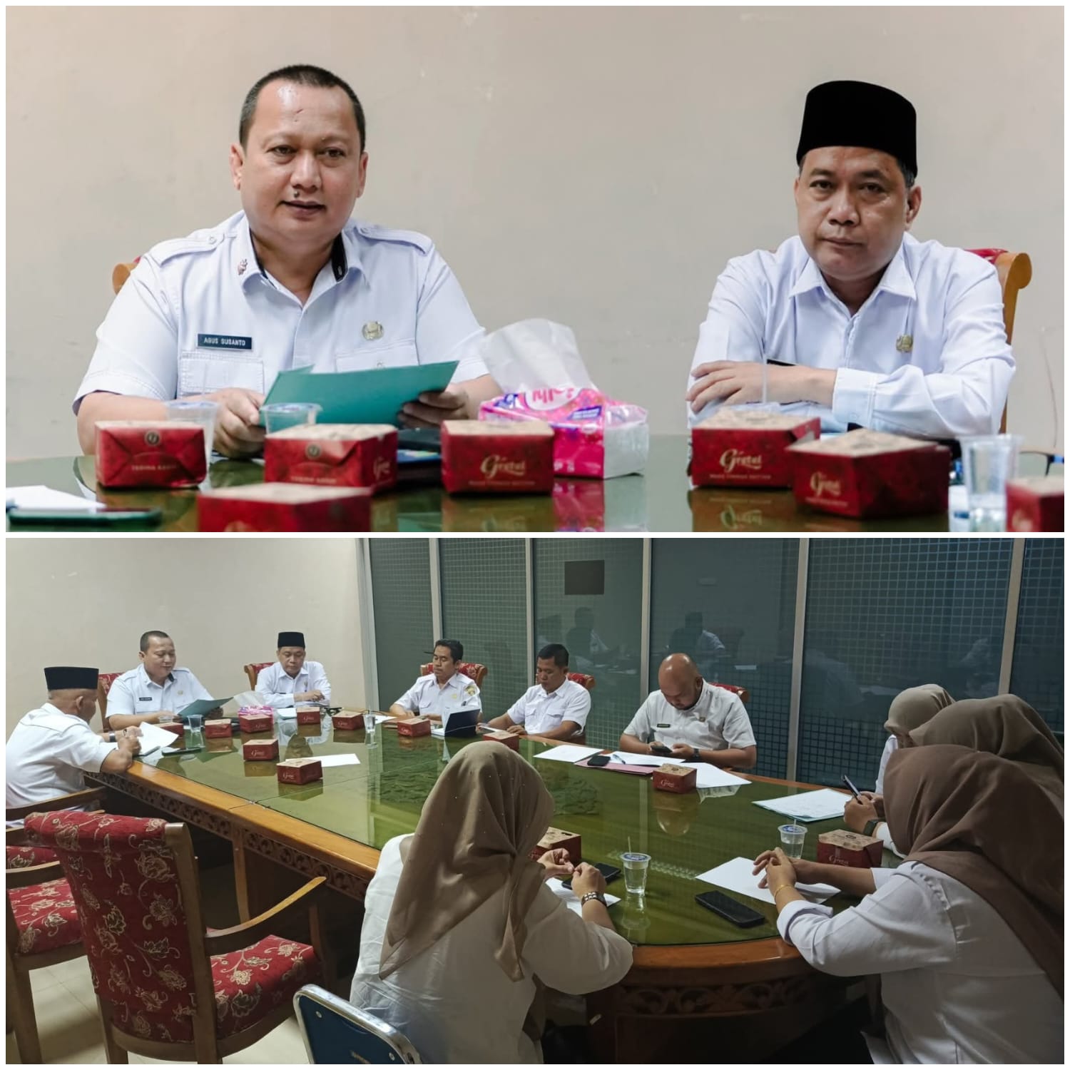Plt. Asisten Pemerintahan dan Kesra Setda Mura, Agus Susanto didampingi Kepala Bagian Kesra Setda Mura, Devi Siswanto pimpin Rapat Optimalisasi Pembayaran ZIS, di Ruang Advokasi Setda Mura, Rabu (30/7/2025). (Foto: Prokopim Setda Mura)