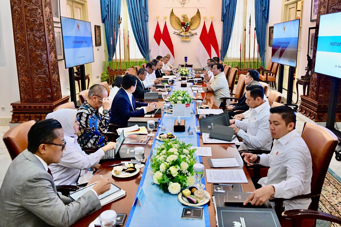 Jakarta (DKI), utarapos.com – Presiden Prabowo Subianto memimpin rapat terbatas mengenai perekonomian nasional bersama jajaran menteri Kabinet Merah Putih di Istana Merdeka, Jakarta, pada Senin, Senin, (25/8/2025). Rapat ini membahas isu strategis yang mencakup ketahanan pangan, pengelolaan energi berbasis sampah, hingga program koperasi desa untuk memperkuat ekonomi rakyat.