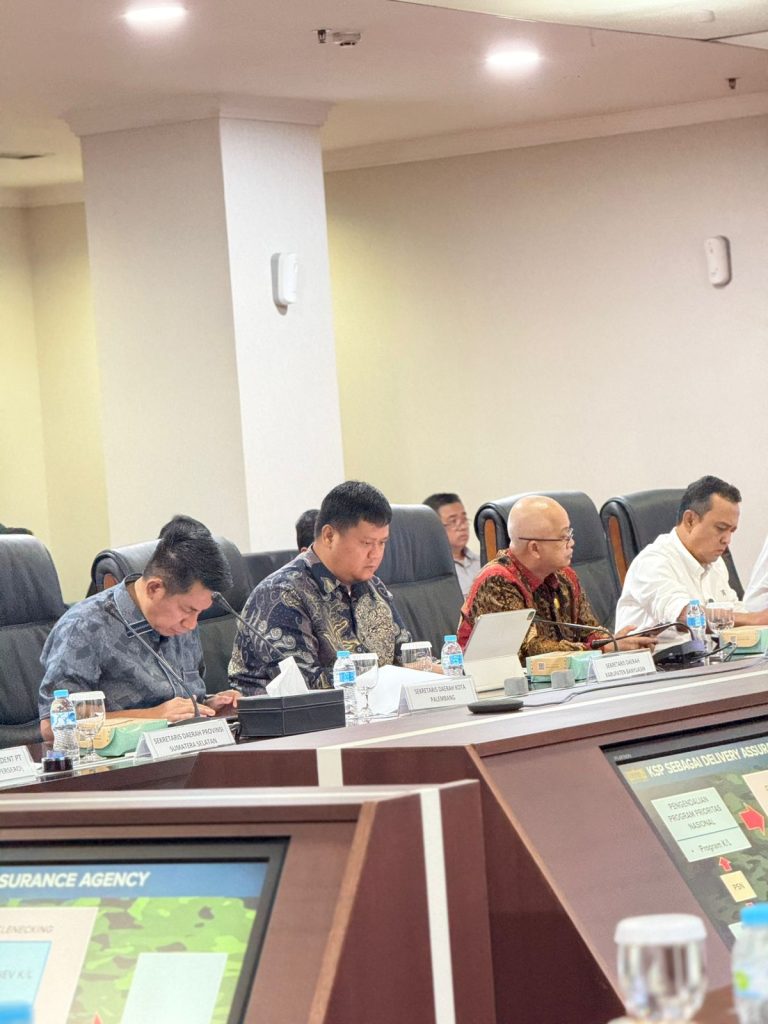 Jakarta (DKI), utarapos.com – Proyek pembangunan Jalan Tol Trans Sumatera (JTTS) ruas Palembang–Betung kembali menjadi fokus perhatian pemerintah pusat. Hal itu terlihat dari rapat koordinasi yang digelar di Ruang Rapat Utama, Gedung Bina Graha Kantor Staf Presiden (KSP), Jakarta, Jumat (12/9/2025), yang turut dihadiri oleh Deputi IV kantor staf presiden Mayjen (Purn) Kasuri, Sekretaris Daerah (Sekda) Provinsi Sumatera Selatan, Drs H Edward Candra MH, Bupati Banyuasin DR H askolani SH MH diwakili Sekda Banyuasin Ir Erwin Ibrahim ST MM MBA IPU ASEAN Eng dan perwakilan instansi vertikal yaitu dari kejaksaan dan kepolisian.