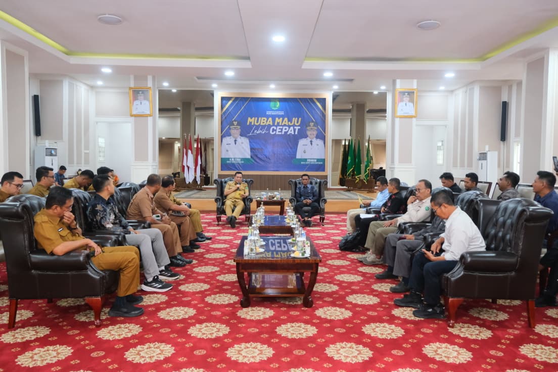 Bupati Musi Banyuasin H.M. Toha Tohet, S.H, menerima audiensi dari 7 Lembaga Pekebun Kelapa Sawit yang Mengusulkan Pelepasan Kebun Kelapa Sawit Keterlanjutan Terbangun dalam Kawasan Hutan, di Guest House Griya Bumi Serasan Sekate.Selasa (16/9/2025)