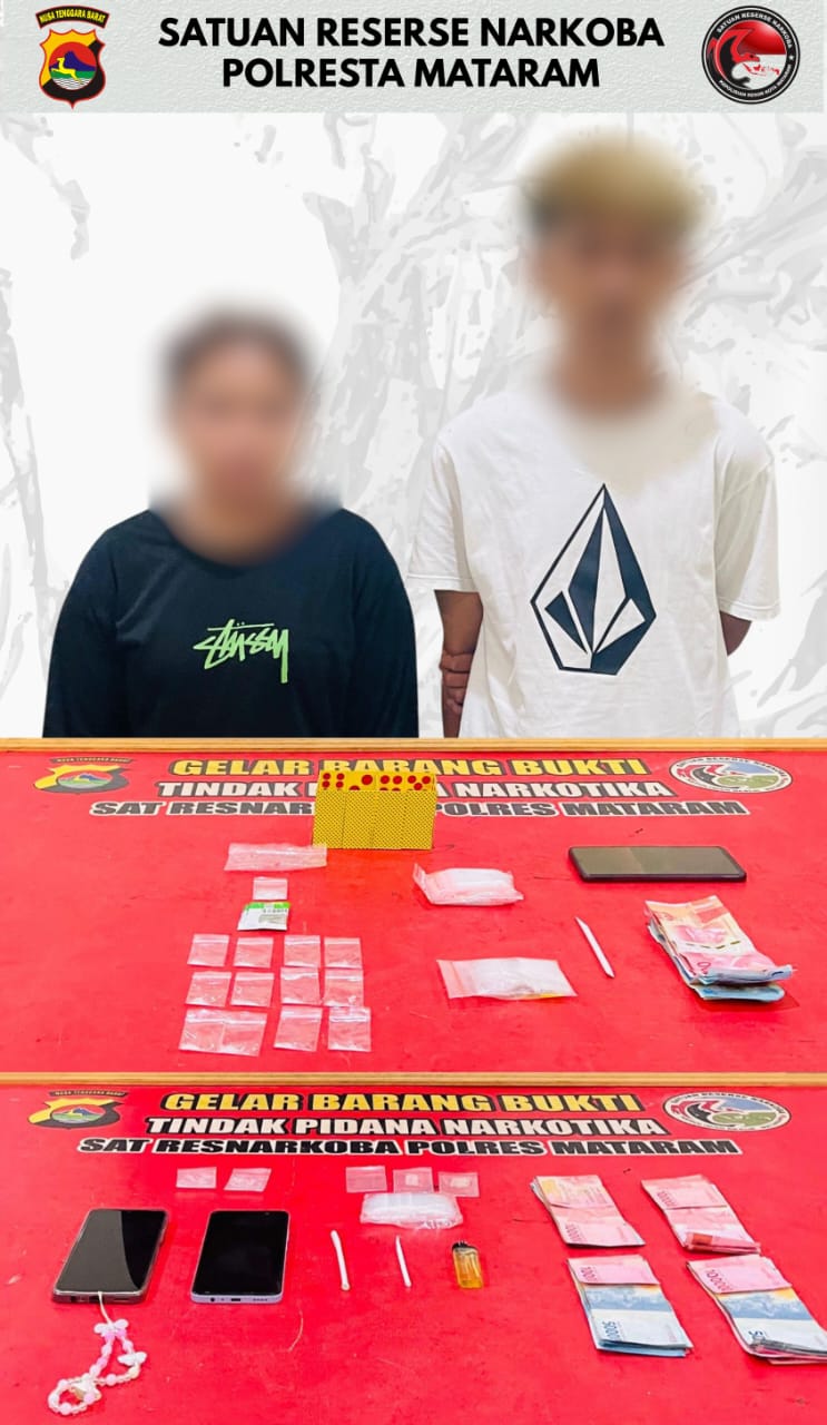 Mataram (NTB), utarapos.com – Tim Opsnal Satresnarkoba Polresta Mataram kembali menggagalkan peredaran Narkotika di wilayah Kota Mataram. Kali ini, dua terduga pelaku asal Karang Bagu, Kecamatan Cakranegara, masing-masing PP (19) dan YES (29), harus berurusan dengan hukum usai diamankan petugas, Minggu dini hari (05/10/2025).