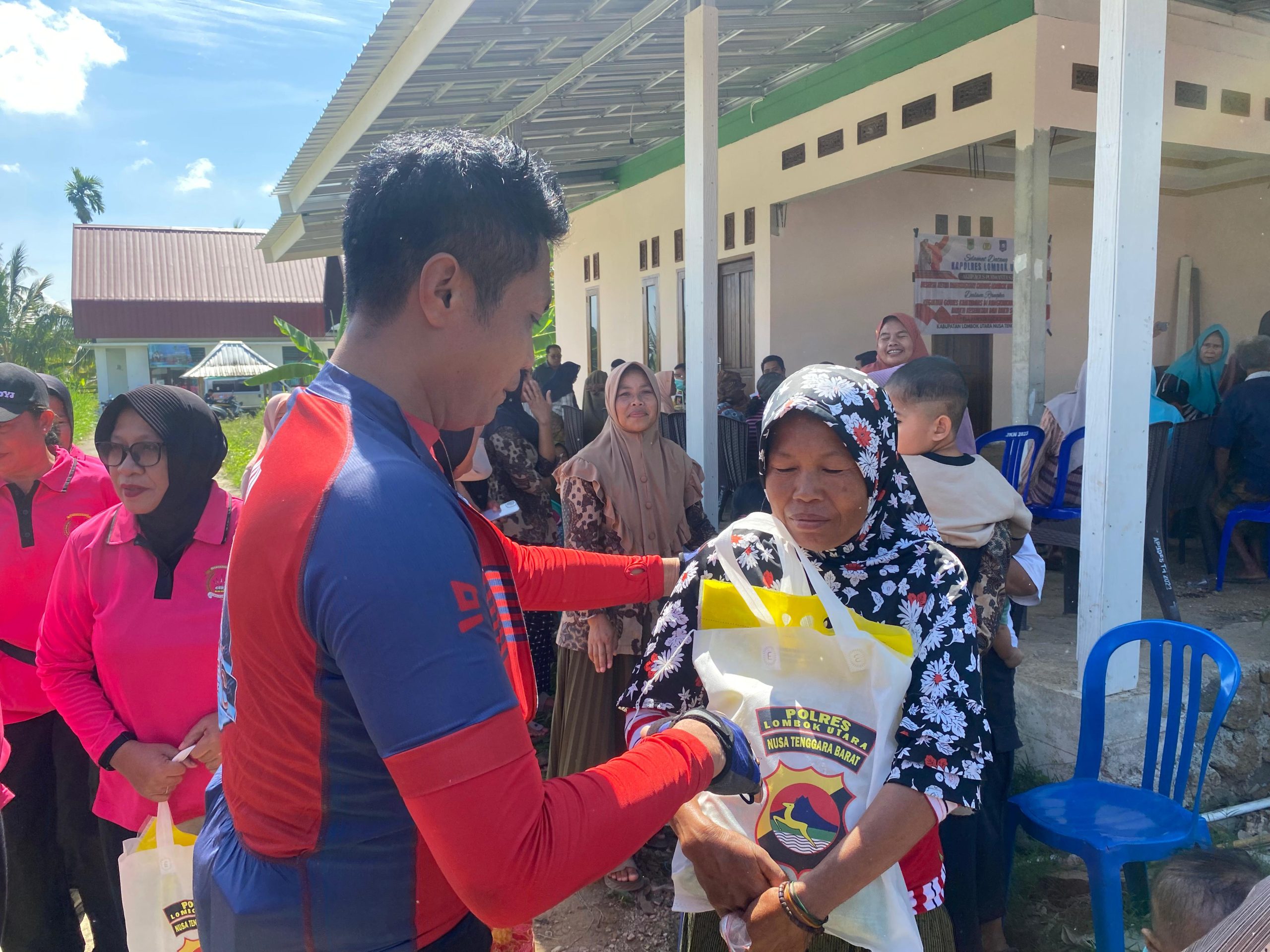 Sesampainya di lokasi, rombongan disambut hangat oleh Kepala Desa Pansor Airman, S.Pd., beserta perangkat desa, tokoh masyarakat, tokoh agama, dan tokoh pemuda setempat. Dalam kesempatan itu, Polres Lombok Utara melalui Dokkes dan Puskesmas Santong membuka layanan kesehatan gratis bagi warga, sekaligus membagikan paket sembako kepada masyarakat yang membutuhkan.