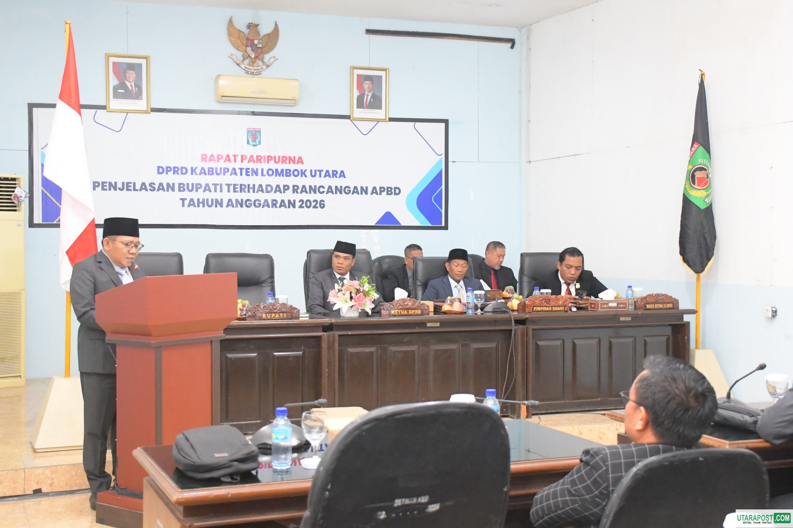 Lombok Utara (NTB), Utarapos.com – Dewan Perwakilan Rakyat Daerah (DPRD) Kabupaten Lombok Utara menggelar rapat paripurna pada Senin (3/11/2025) di ruang sidang DPRD KLU. Rapat dalam rangka mendengarkan penjelasan dari Bupati mengenai Rancangan Anggaran Pendapatan dan Belanja Daerah (RAPBD) Tahun Anggaran 2026.
