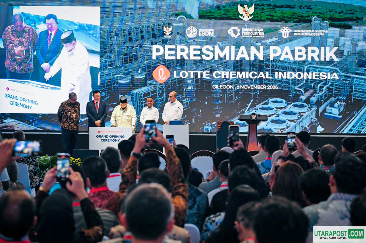 Cilegon (Banten), utarapos.com – Presiden Prabowo Subianto meresmikan pabrik Lotte Chemical Indonesia (LCI) di Kota Cilegon, Provinsi Banten, pada Kamis, (6/11/2025). Acara peresmian ini menandai beroperasinya salah satu proyek industri petrokimia yang menjadi tonggak penting dari upaya pemerintah memperkuat hilirisasi industri nasional.