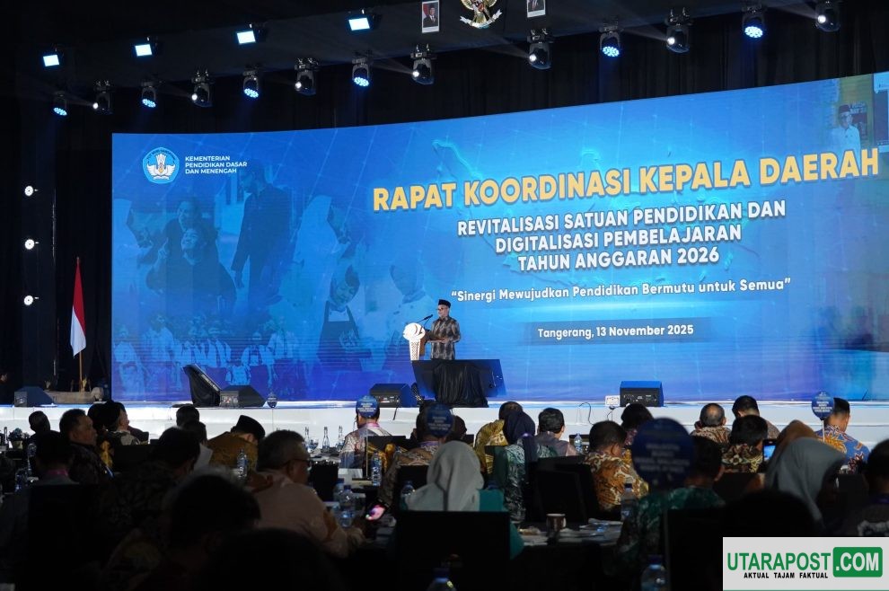 Tanggerang (Banten), utarapos.com— Bupati Banyuasin Dr. H. Askolani, S.H.,M.H hadir pada Rapat Koordinasi Kepala Daerah Revitalisasi Satuan Pendidikan dan Digitalisasi Pembelajaran Tahun Anggaran 2026. Dengan tema “Sinergi Mewujudkan Pendidikan Bermutu Untuk Semua’ giat ini diselenggarakan di Indonesia Convention Exhibition (ICE) BSD Hall 3, Tanggerang, Kamis (13/112025). malam