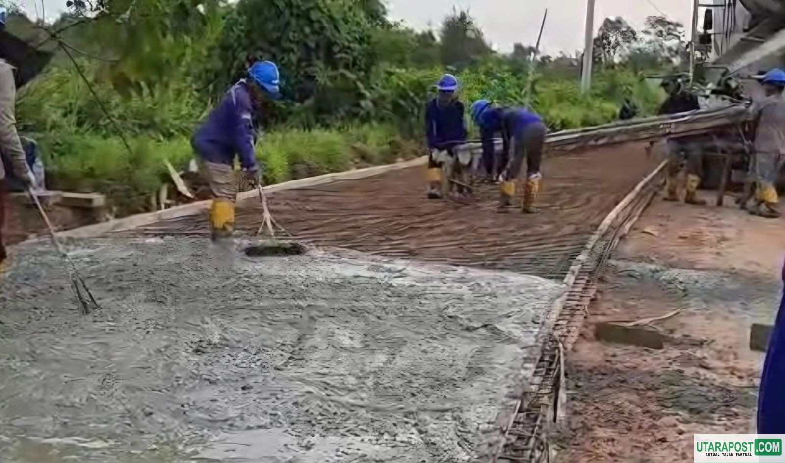 Jalan selebar delapan meter itu dibangun menggunakan konstruksi wiremesh dengan ketebalan cor 20 sentimeter.