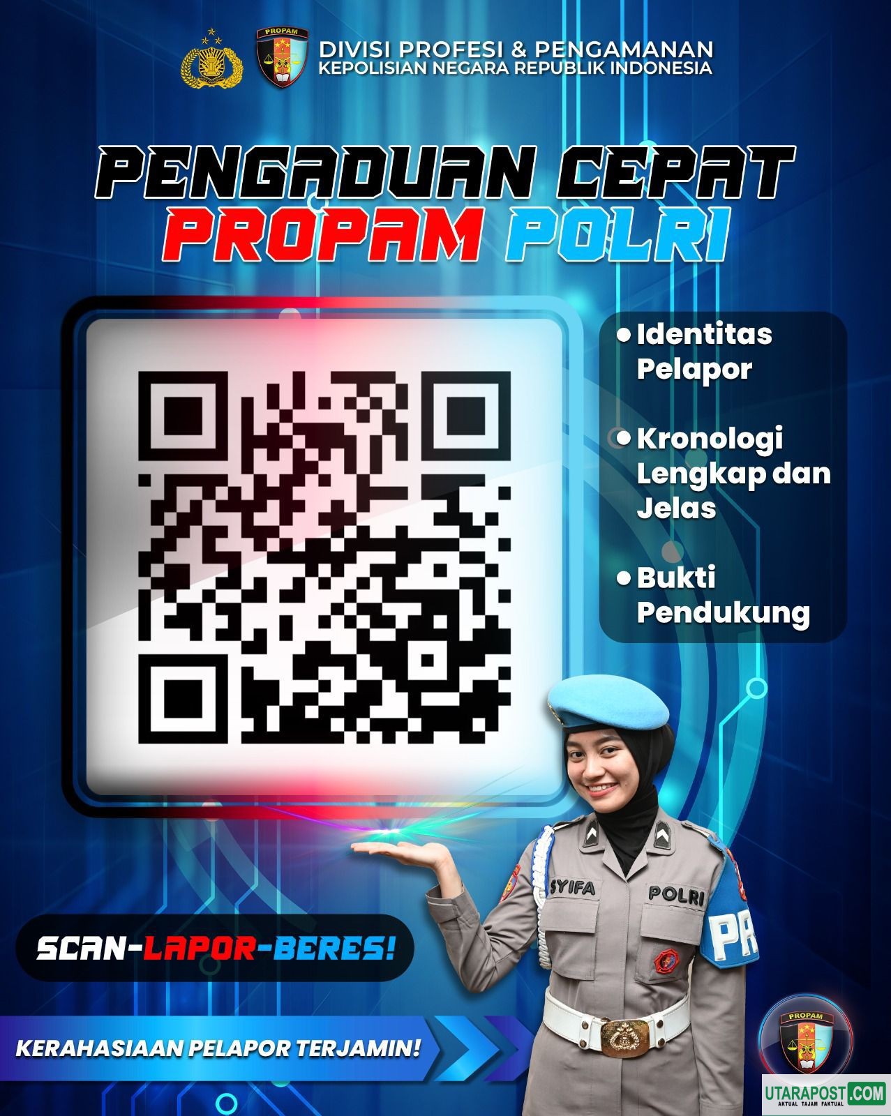 Masyarakat cukup memindai QR Code yang telah disebar pada platform resmi Propam Polri, atau mengakses langsung situs layanan pengaduan melalui: yanduan.propam.polri.go.id