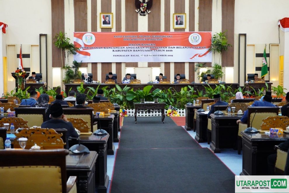 Rapat Paripurna yang sudah berlangsung sejak 17 – 24 November 2025 ini beragendakan, Penyampaian Laporan Hasil Pembahasan Komisi-Komisi DPRD dan Pengambilan Keputusan oleh DPRD Kab. Banyuasin, yang ditandatangani bersama melalui Persetujuan bersama antara DPRD dan Bupati Banyuasin tentang Rancangan APBD Tahun 2026.