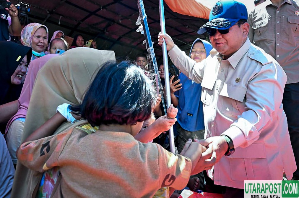 Aceh Tenggara (Aceh), utarapos.com – Suasana haru dan penuh kehangatan menyelimuti Posko Pengungsian di Desa Bambel Baru, Kabupaten Aceh Tenggara saat Presiden Republik Indonesia Prabowo Subianto tiba untuk meninjau langsung kondisi korban banjir yang kini tinggal di tenda-tenda darurat pada Senin, (1/12/2025). Ribuan warga memadati lokasi pengungsian, menanti kedatangan Presiden Prabowo.