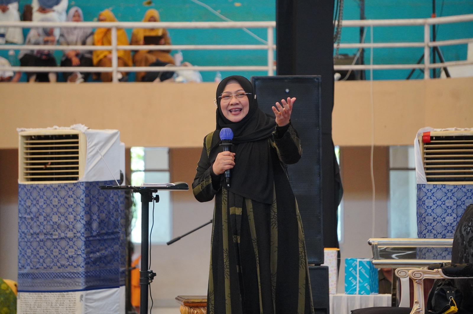 OKI (Sumsel), utarapos.com — Pemerintah Kabupaten Ogan Komering Ilir (OKI) menghadirkan dr Aisah Dahlan, CMHt., CM.NLP dalam kegiatan Muhasabah Akhir Tahun dan Peringatan Hari Ibu yang digelar di GOR Perahu Kajang, Selasa (16/12/2025). Kegiatan tersebut diikuti ribuan jemaah yang didominasi ibu-ibu majelis taklim se-Kabupaten OKI serta peserta dari daerah sekitar, seperti Ogan Ilir, OKU Timur, dan Kota Palembang.