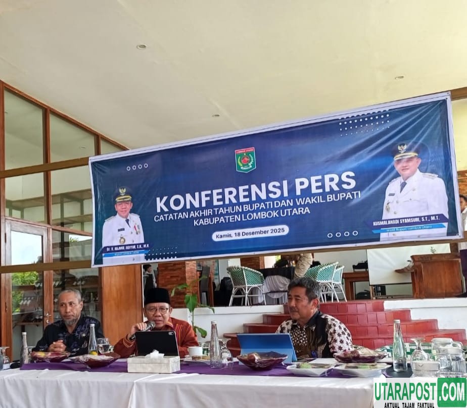 Lombok Utara (NTB), Utarapos.com – Pemerintah Daerah (Pemda) Kabupaten Lombok Utara (KLU) melalui Dinas Komunikasi dan Informasi menggelar konferensi pers dalam rangka memaparkan capaian-capaian selama satu tahun masa jabatan Bupati Najmul Akhyar dan Wakil Bupati Kusmalahadi Syamsuri. Kegiatan ini dilaksanakan di Anema Resort, Kamis (18/12/2025).