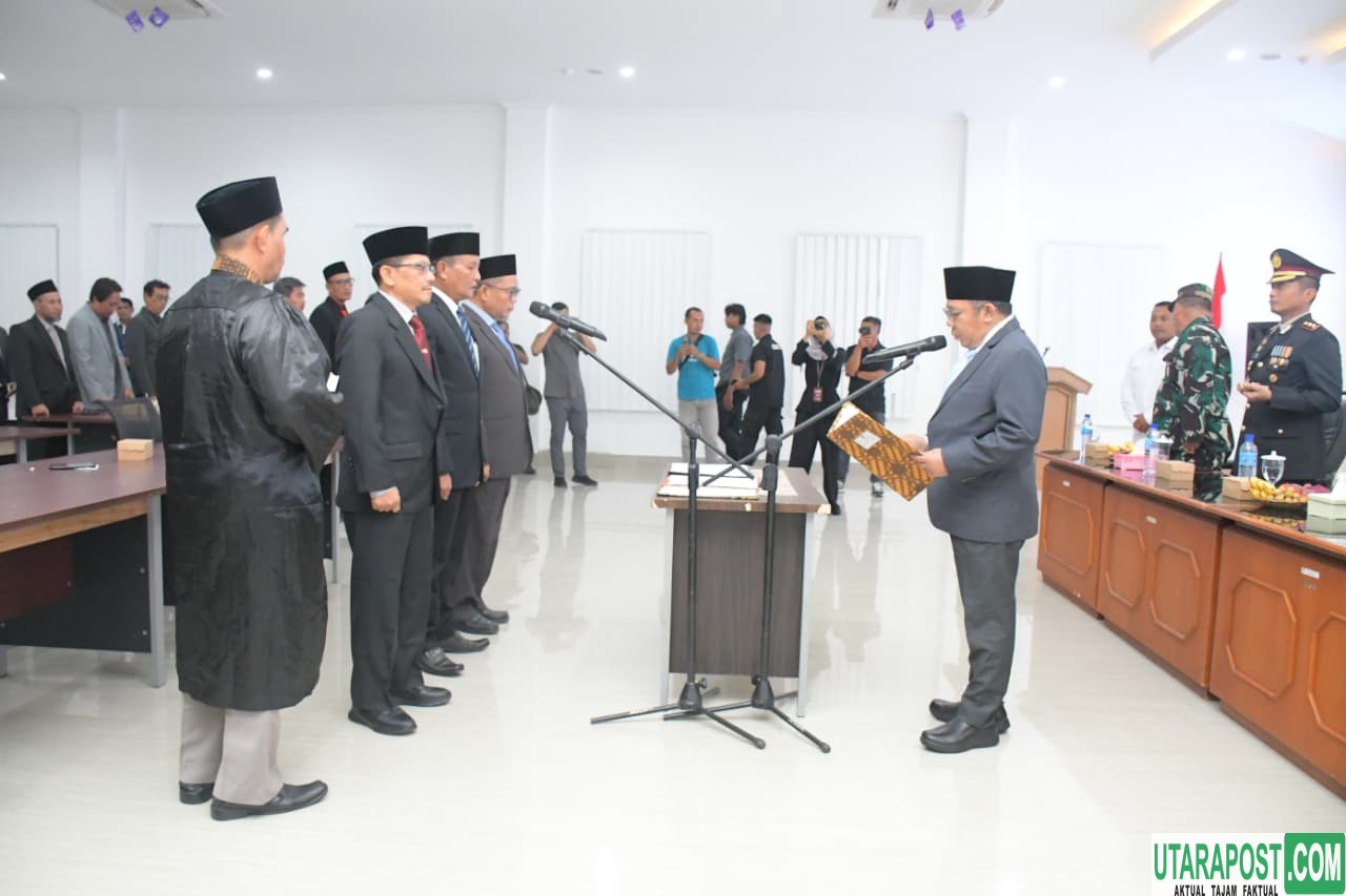 Lombok Utara (NTB), Utarapos.com – Bupati Lombok Utara Dr. H. Najmul Akhyar, S.H., M.H resmi melantik dan mengambil sumpah jabatan Sahabudin, S.Sos., M.Si. sebagai Sekretaris Daerah (Sekda) Kabupaten Lombok Utara (KLU) defenitif Jumat (19/12 2025). Pelantikan menandai berakhirnya proses seleksi terbuka yang ketat sesuai Peraturan Pemerintah Nomor 11 Tahun 2017 tentang Manajemen Pegawai Negeri Sipil. Dimana Sebelumnya Sahabudin menjabat sebagai Kepala Dinas Pekerjaan Umum dan Penataan Ruang (PUPR) sekaligus Plt Sekda Kabupaten Lombok Utara.
