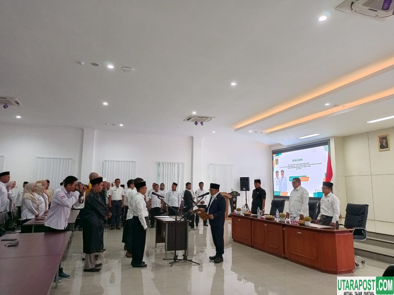 Lombok Utara (NTB), utarapos.com –Bupati Lombok Utara, H. Najmul Akhyar, melantik dan mengambil sumpah jabatan 58 pejabat di lingkungan Pemerintah Daerah Kabupaten Lombok Utara (KLU). terdiri dari 1 Penjabat Pimpinan Tinggi Pratama dan 57 pejabat administrator serta pengawas. Acara berlangsung di aula bupati setempat Rabu (31/12/2025). Yang tertuang dalam Surat Keputusan Bupati Lombok Utara Nomor : 342/1986/BKPSDM/2025 Tanggal 31 Desember 2025. Pelantikan tersebut turut dihadiri Wakil Bupati Lombok Utara, Kusmalahadi Syamsuri, Ketua DPRD KLU, Agus Jasmani, serta Sekretaris Daerah KLU, Sahabudin.