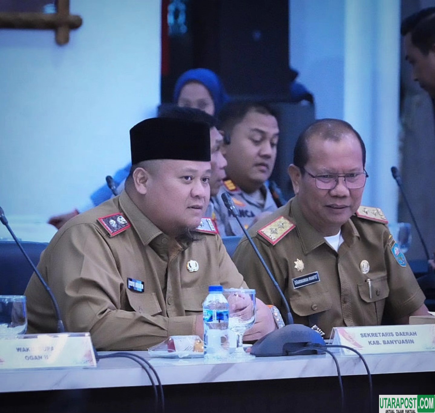Palembang (Sumsel), utarapos.com — Dalam rangka penyamaan implementasi kesiapan pemberlakuan angkutan batubara menggunakan jalan khusus pertambangan, mewakili Bupati Banyuasin, Sekretaris Daerah Banyuasin, Ir. Erwin Ibrahim, ST., MM., MBA,. IPU., ASEAN. Eng mengikuti rapat koordinasi kesiapan pemberlakuan angkutan batubara menggunakan jalan khusus pertambangan digelar di Griya Agung, Selasa (30/12/2025).