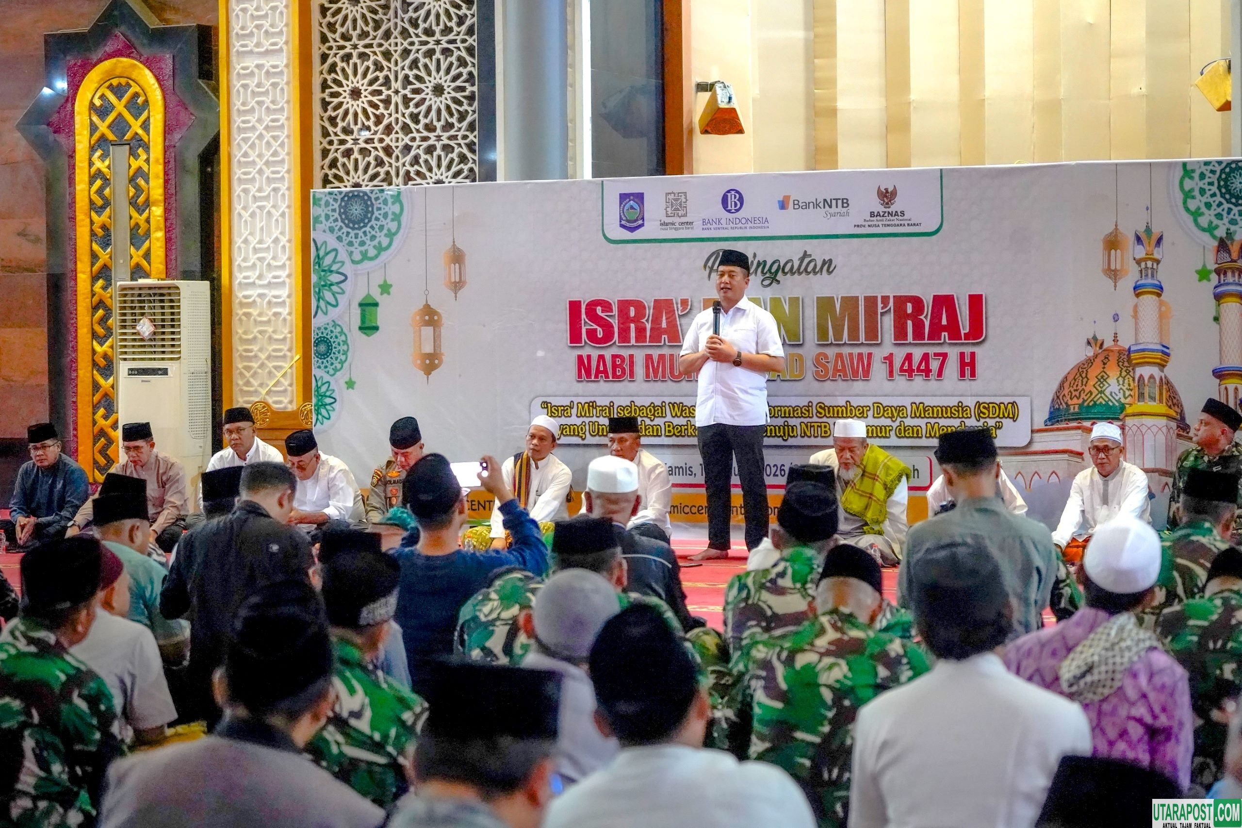 Mataram (NTB), utarapos.com – Gubernur NTB Lalu Muhamad Iqbal mengajak masyarakat memperkuat solidaritas sosial dan kepedulian lingkungan dalam peringatan Isra’ Mi’raj Nabi Muhammad SAW 1447 Hijriah di Masjid Raya Hubbul Wathan Islamic Center, Mataram, Kamis (15/1/2026).