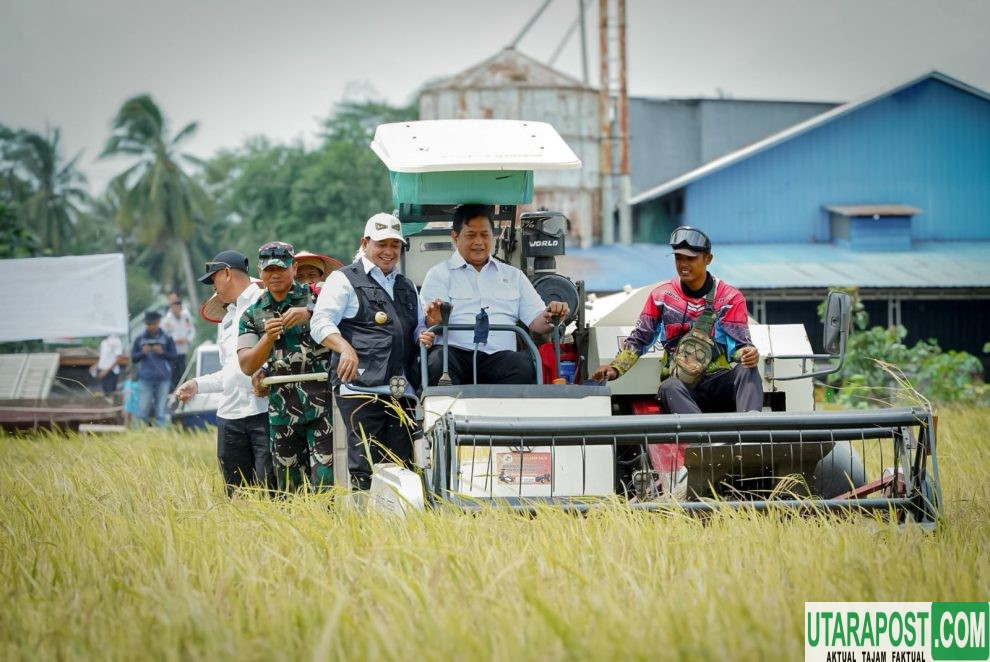 Banyuasin (Sumsel), utarapos.com — Panen Raya di Desa Telang Rejo Kecamatan Muara Telang kali ini lebih berkesan, hal ini karena Wakil Menteri Transmigrasi (Wamentrans) Viva Yoga Mauladi, turut hadir ikut panen raya sekaligus melakukan penyerahan bantuan pengembangan kelembagaan kepada koperasi produsen transmigrasi merah putih Telang.