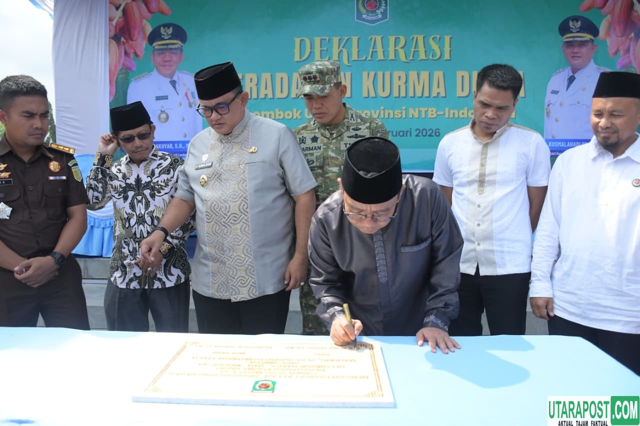 Lombok Utara (NTB), utarapos.com – Tepat setahun Bupati dan Wakil Bupati Lombok Utara (Najmul-Kusmalahadi) dilantik memimpin Lombok Utara. Kini tepat pada hari Jumat (20 /2/2026) Najmul-Kus mencetak sejarah di gumi Tioq Tata Tunaq dengan mendeklarasikan paer Dayan Gunung sebagai Peradaban Kurma Tropis Dunia. Deklarasi ini disaksikan oleh pihak-pihak yang terkait dengan dunia perkurmaan di Indonesia seperti BRIN, BRIDA NTB, KDPA, Presiden Kurma Indonesia, berbagai kalangan akademisi dari kampus ternama Indonesia seperti Universitas Brawijaya, Universitas Indonesia, dan Iniversitas Gadjahmada, selain itu hadir pula dari berbagai pihak pendukung.