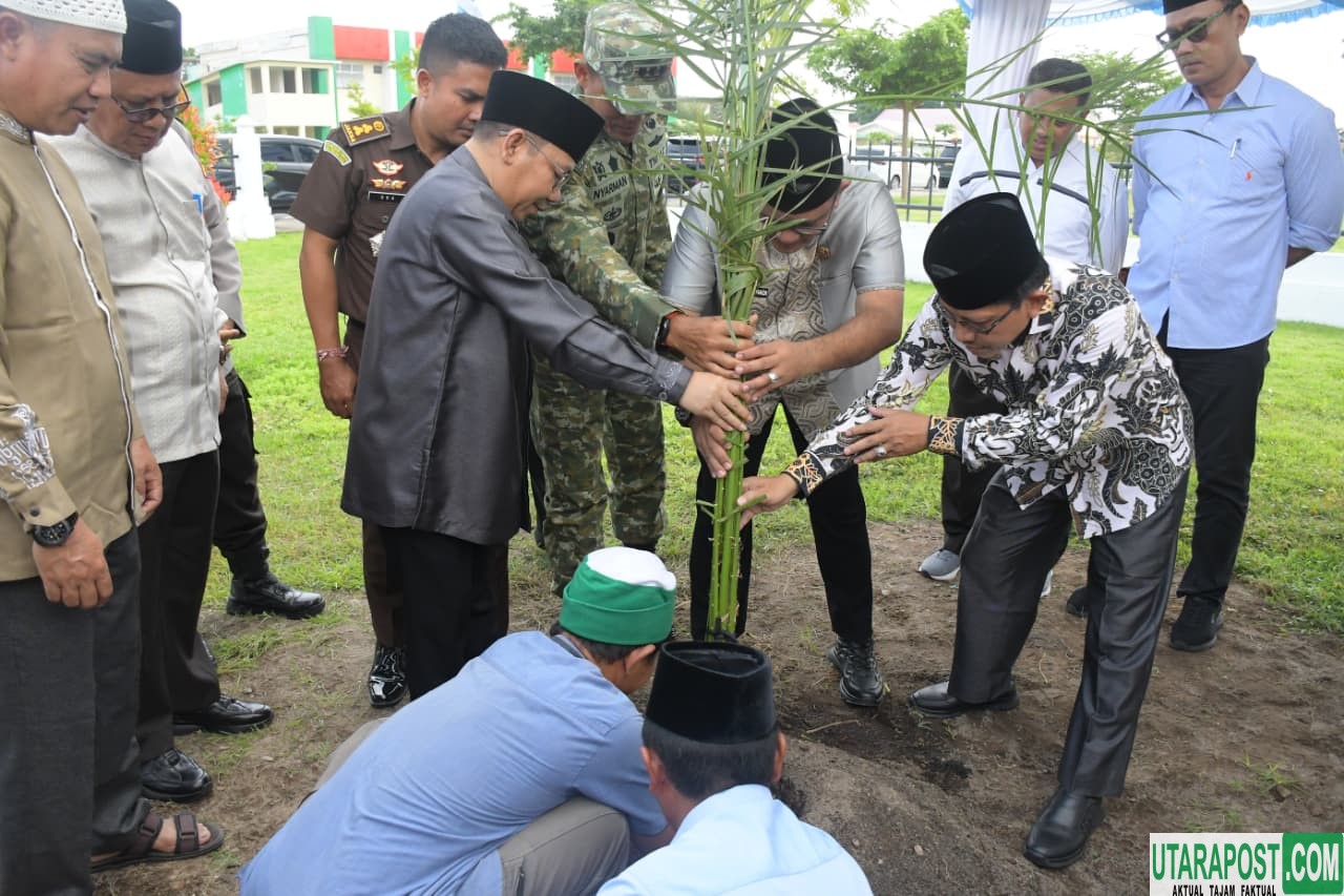Bupati Lombok Utara Dr. H. Najmul Akhyar, S.H., M.H., bersama Wakil Bupati Kusmalahadi Syamsuri, S.T., M.T.dan Forkopimda lakukan penanaman bibit kurma rangkaian deklarasi KLU pusat peradaban kurma tropis di Indonesia. Deklarasi bersejarah ini berlokus di Alun-Alun Tioq Tataq Tunaq, Rabu (20/2/2026).