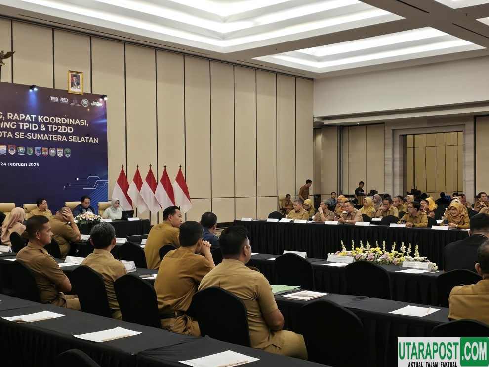 Banyuasin (Sumsel), utarapos.com – Bupati Banyuasin, Dr. H. Askolani, S.H., M.H. diwakili Asisten II Bidang Perekonomian dan Pembangunan Kabupaten Banyuasin, Ir. Alfian, M.M., menghadiri kegiatan Capacity Building Tim Pengendalian Inflasi Daerah (TPID) Provinsi, Kabupaten/Kota se-Sumatera Selatan tentang Penyusunan Laporan Kinerja TPID Tahun 2025 dalam rangka TPID Award 2026, yang digelar di Hotel Wyndham, Selasa (24/02/2026).