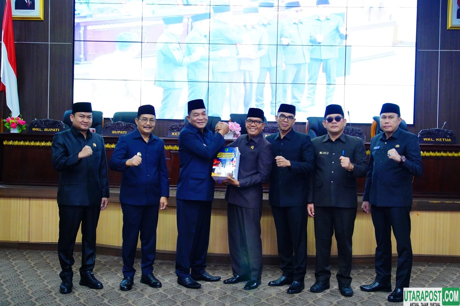 Musi Banyuasin (Sumsel), utarapos.com – Bupati Musi Banyuasin H.M. Toha Tohet, S.H didampingi oleh Wakil Bupati Muba Abdur Rohman Husen, menyampaikan Penjelasan Laporan Keterangan Pertanggungjawaban (LKPJ) Tahun Anggaran 2025 dalam Rapat Paripurna Masa Persidangan II Rapat ke-3, Senin (02/03/2026) di Ruang Rapat Paripurna DPRD