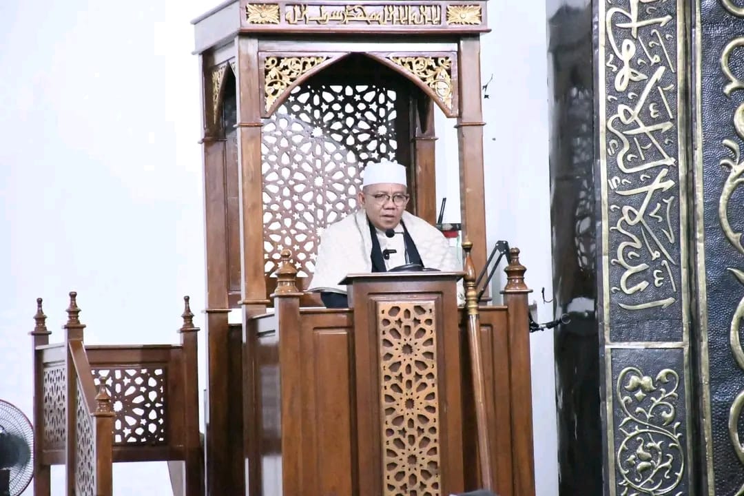 Bupati Lombok Utara, Dr.H. Najmul Akhyar, S.H., M.H.,sampaikan sambutan pada hari raya Idul Fitri 1447 Hijriah di Islamic Center Masjid Agung Baiturrahim, Tanjung, pada Sabtu (21/03/2026).