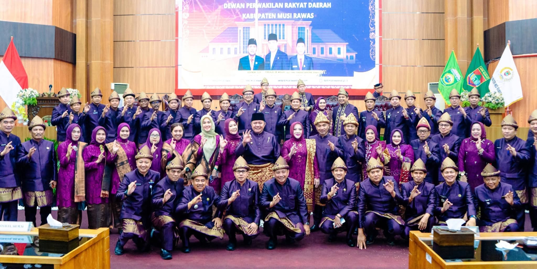 Rapat paripurna dipimpin langsung Ketua DPRD Mura, Firdaus Cik Olah didampingi Wakil Ketua (Waka) I, Azandri dan Waka II, Yani Yandika Saputra dan dihadiri Gubernur Sumatera Selatan (Sumsel), H Herman Deru bersama Ketua TP PKK Provinsi Sumsel, Hj Febrita Lustia Herman Deru, Bupati Mura, Hj Ratna Machmud beserta Ketua TP PKK Mura, H Riza Novianto Gustam, Wakil Bupati (Wabup) Mura, H Suprayitno, serta unsur Forkopimda.